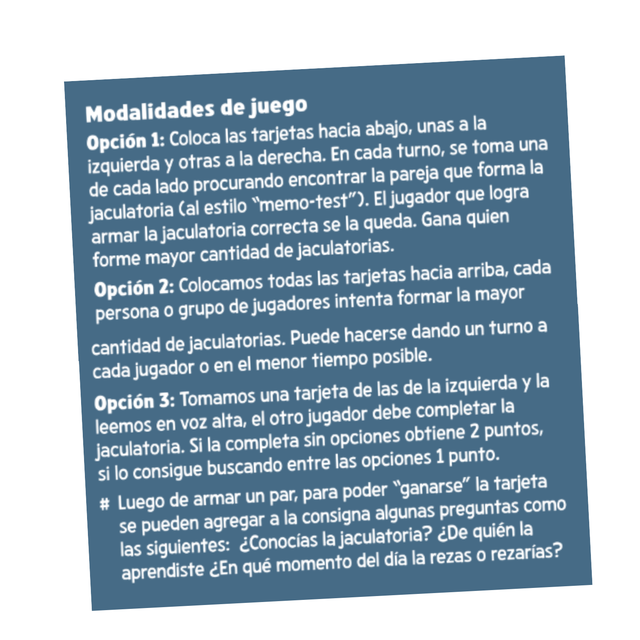 Un juego para chicos y grandes, un juego para ejercitar la memoria, un juego para armar, aprender y rezar.
