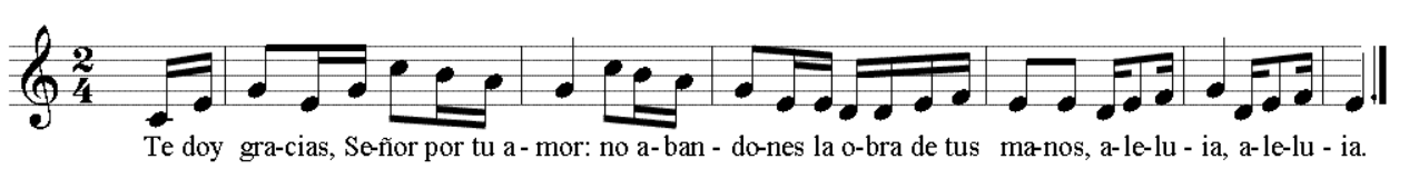 Te doy gracias, Señor, por tu amor. No abandones la obra de tus manos. Aleluia, aleluia (Salmo 137).